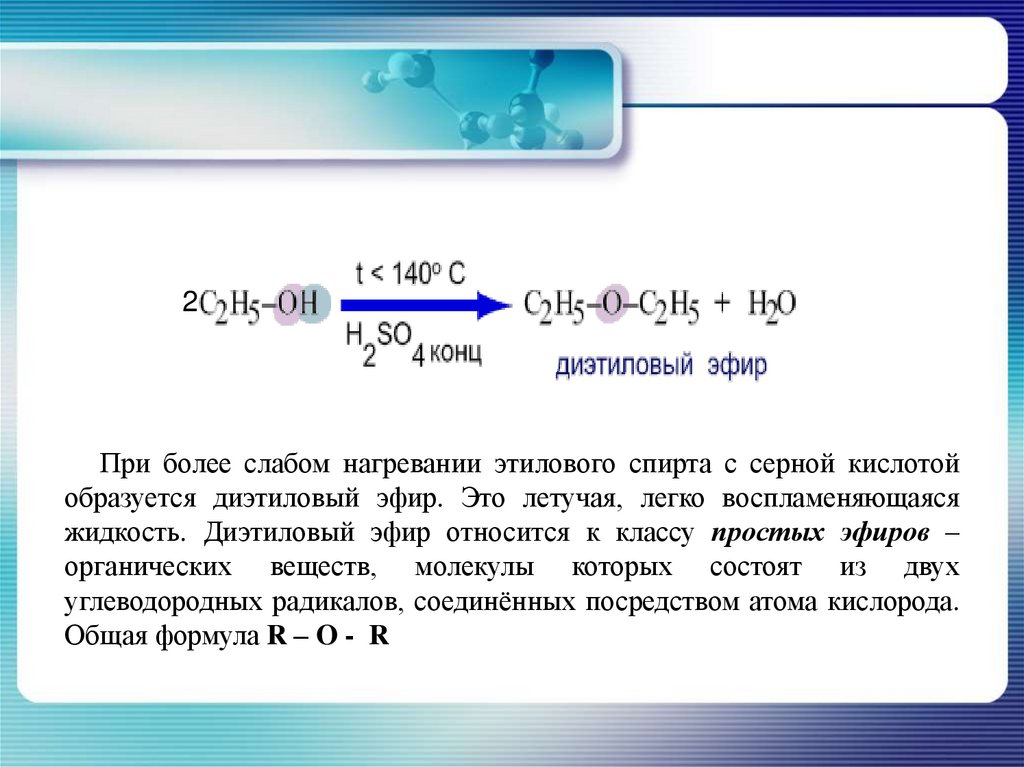 образуется диэтиловый эфир. Это летучая, легко воспламеняющаяся