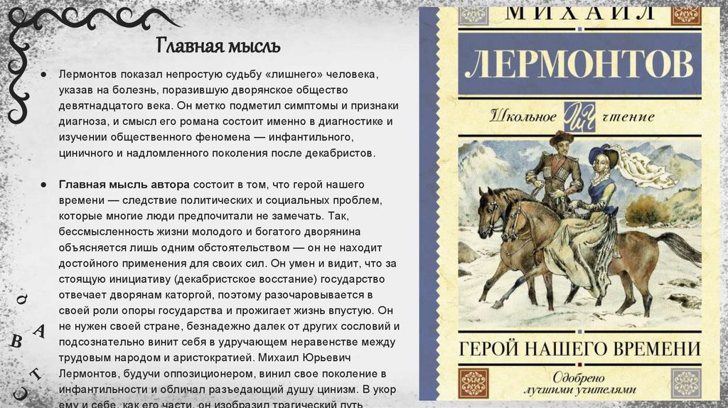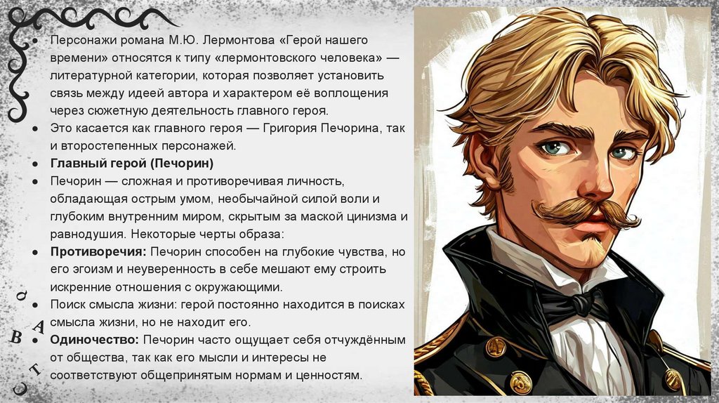 ● Персонажи романа М.Ю. Лермонтова «Герой нашеговремени» относятся к типу «лермонтовского человека» —