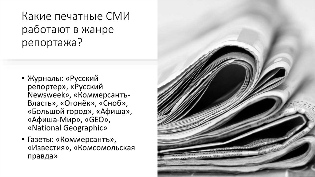 2. Какие печатные СМИ работают в жанре репортажа?