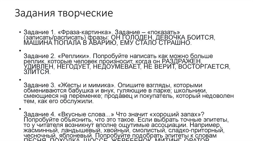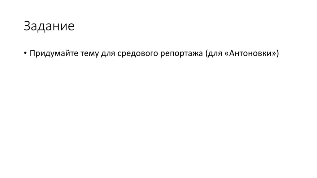 • Придумайте тему для средового репортажа (для «Антоновки»)23. Задания творческие