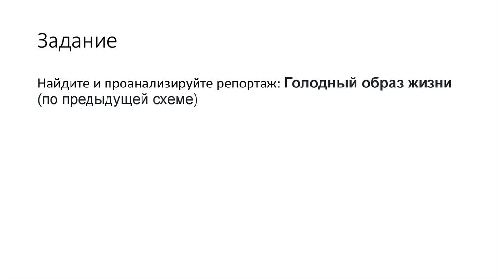 Найдите и проанализируйте репортаж: Голодный образ жизни(по предыдущей схеме)