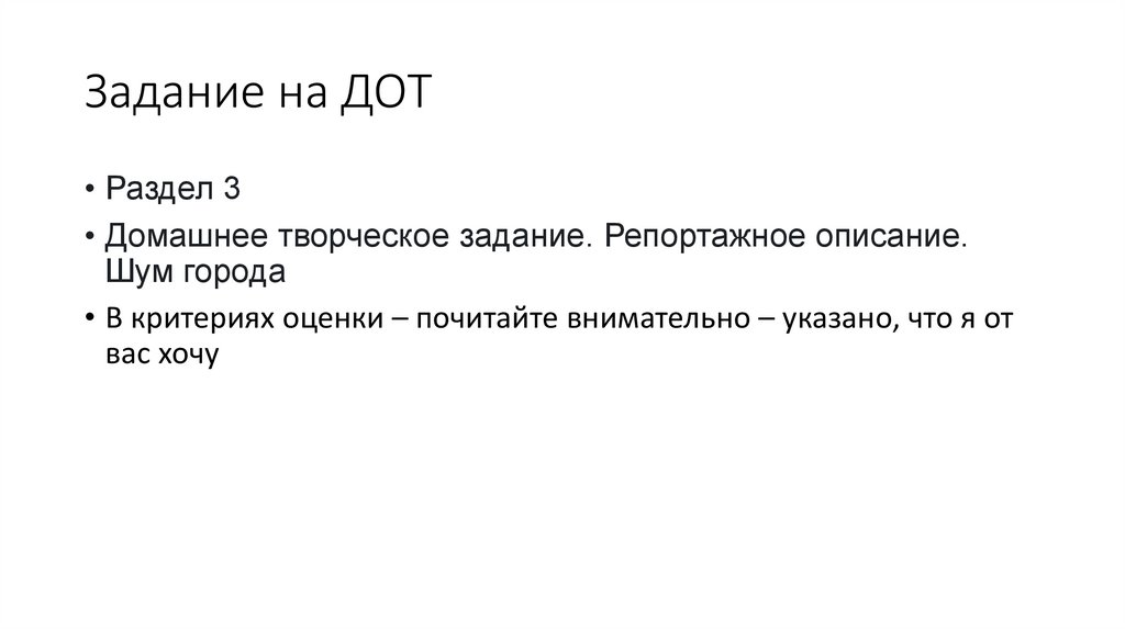 • Раздел 3• Домашнее творческое задание. Репортажное описание.