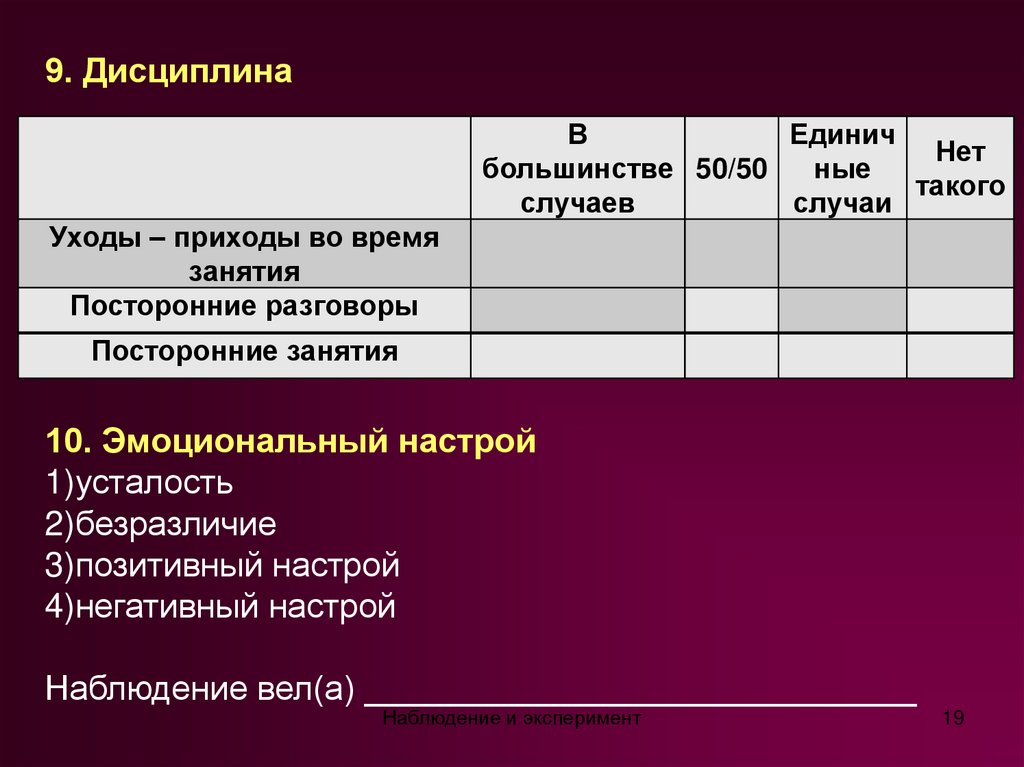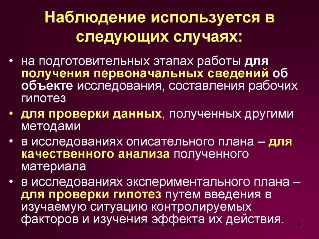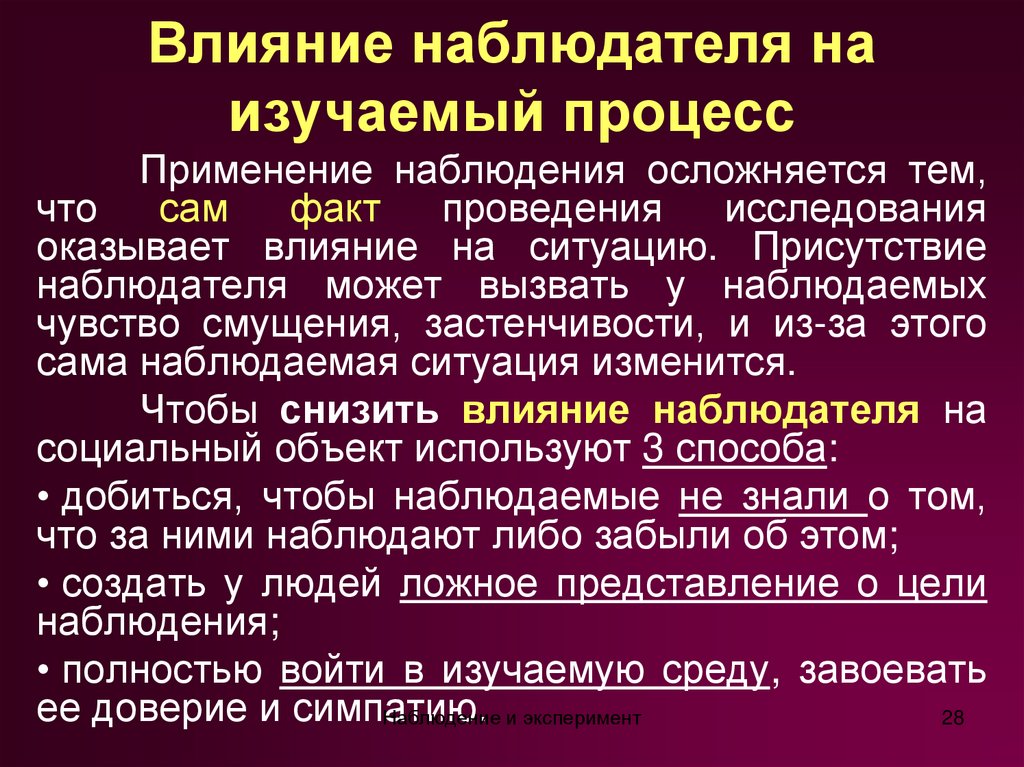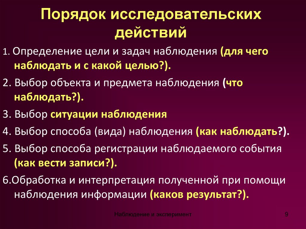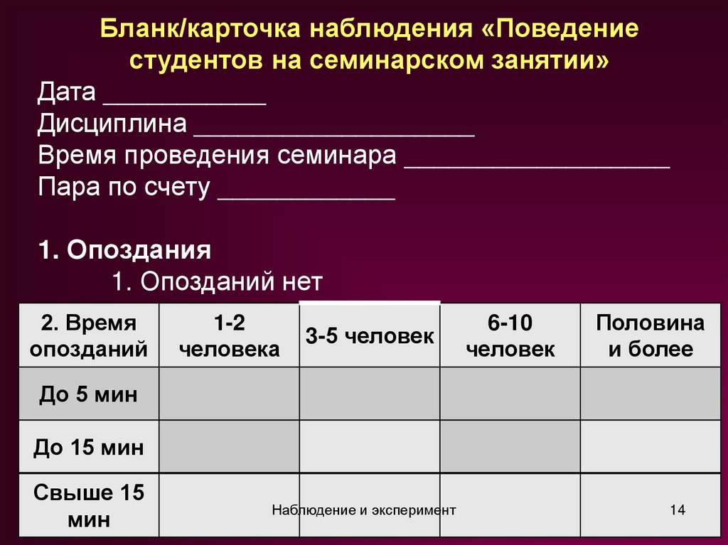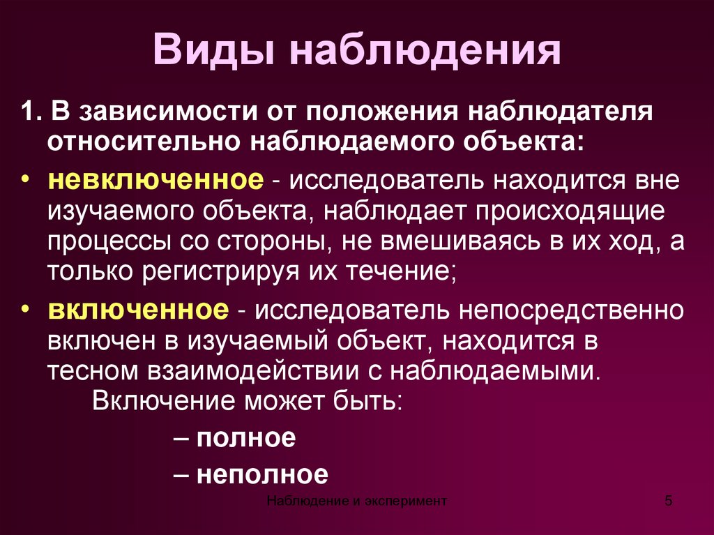 4. Выбор способа (вида) наблюдения (как наблюдать?).