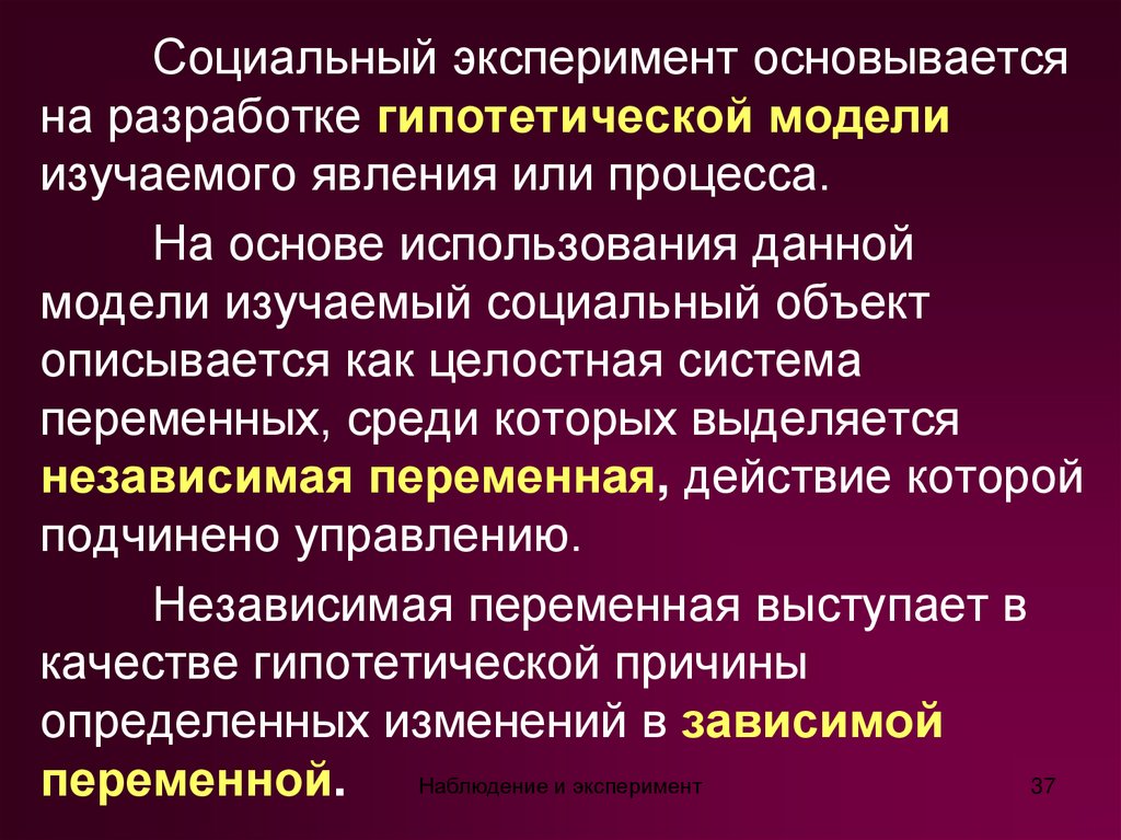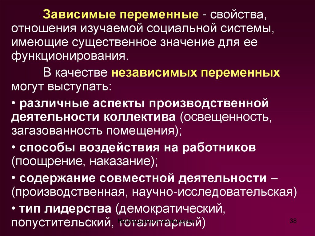 Зависимые переменные - свойства,отношения изучаемой социальной системы,