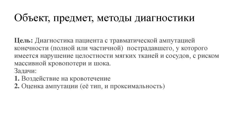 Цель: Диагностика пациента с травматической ампутациейконечности (полной или частичной) пострадавшего, у которого