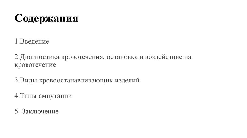 1.Введение2.Диагностика кровотечения, остановка и воздействие на