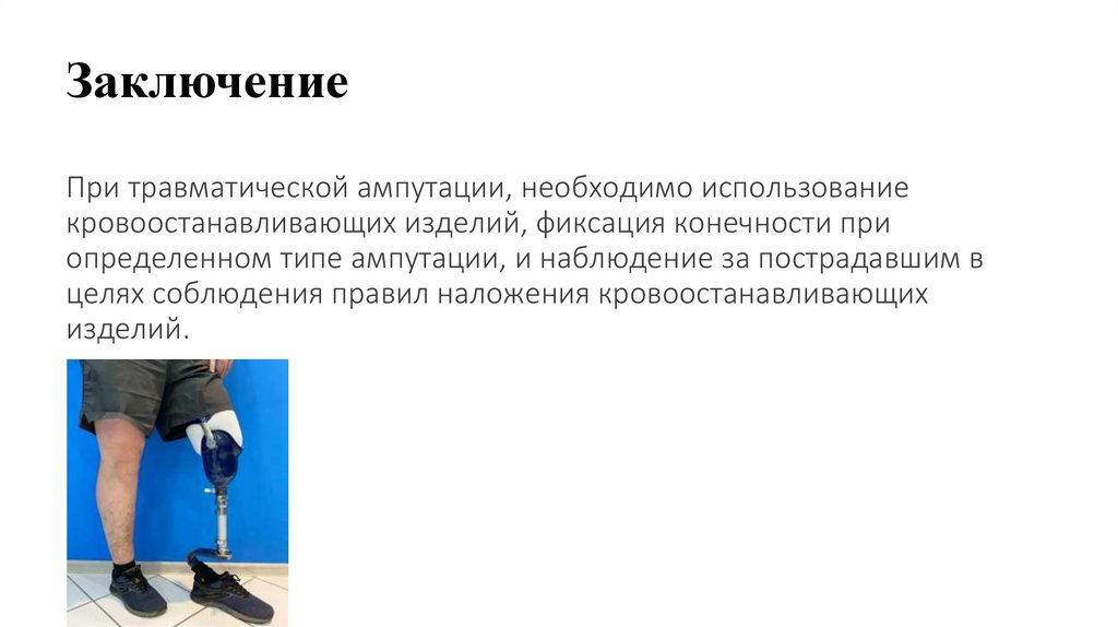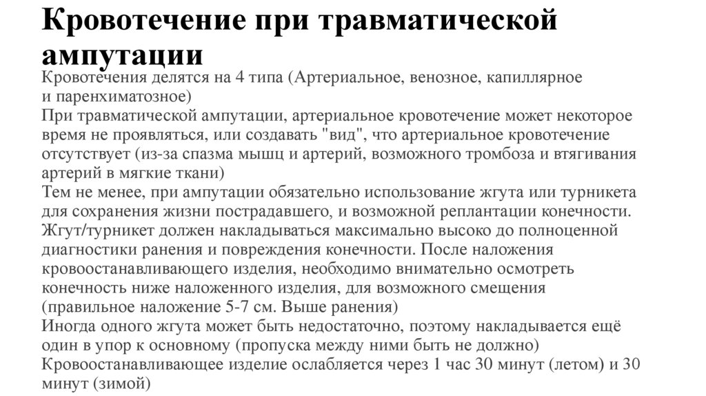 При травматической ампутации, необходимо использованиекровоостанавливающих изделий, фиксация конечности при