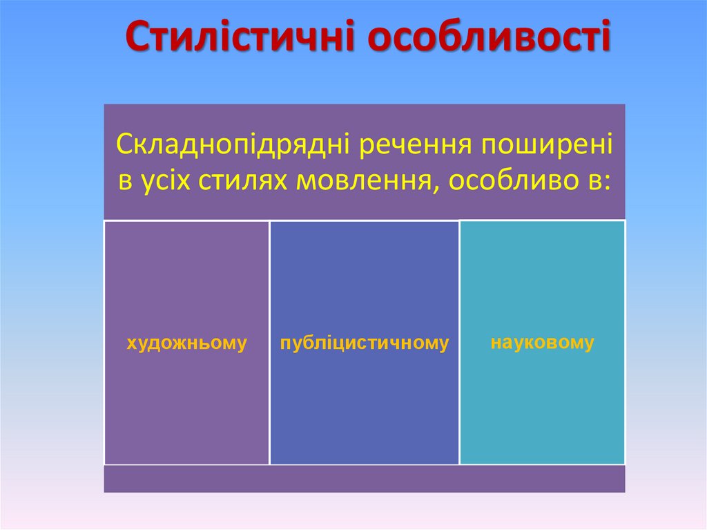 Складнопідрядні речення поширенів усіх стилях мовлення, особливо в: