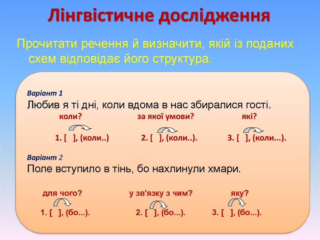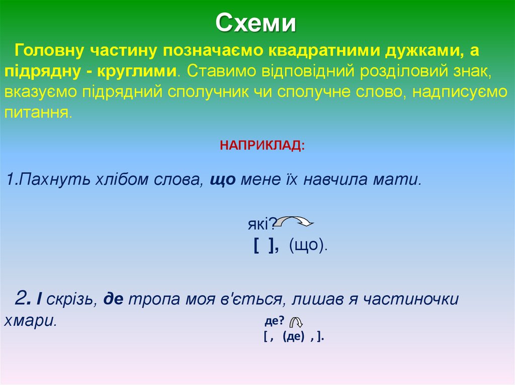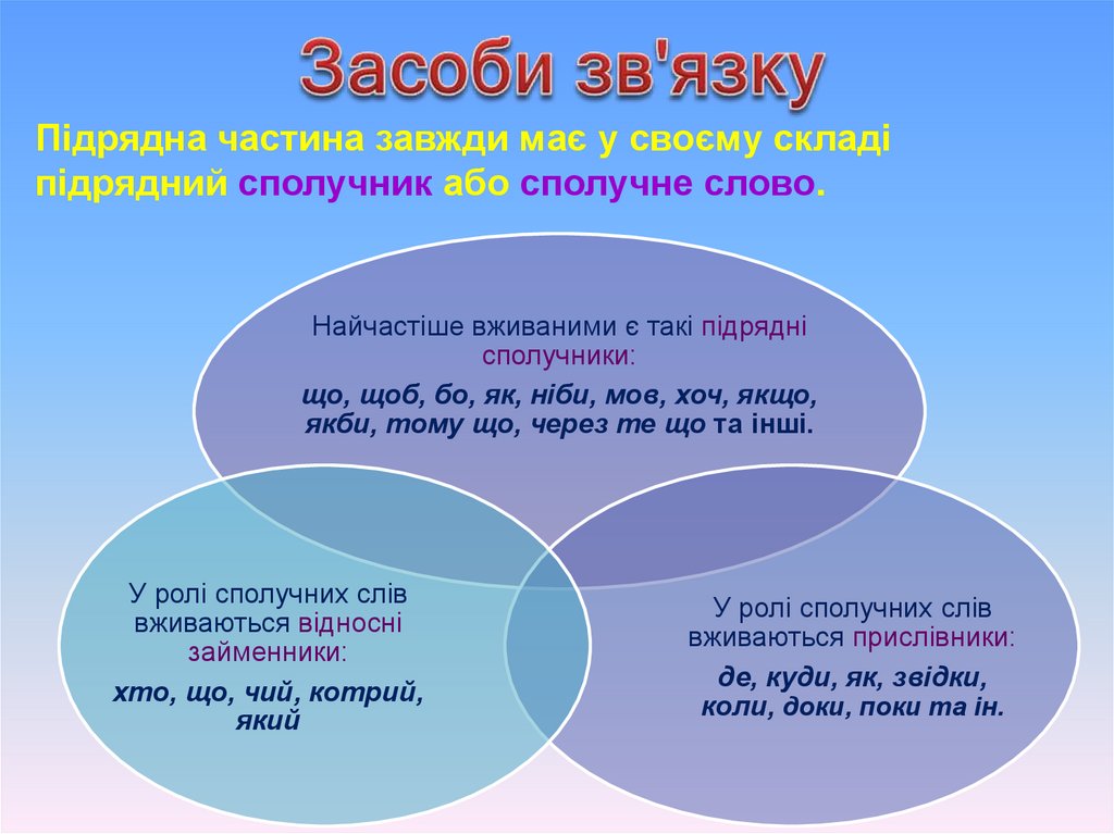 вказуємо підрядний сполучник чи сполучне слово, надписуємо