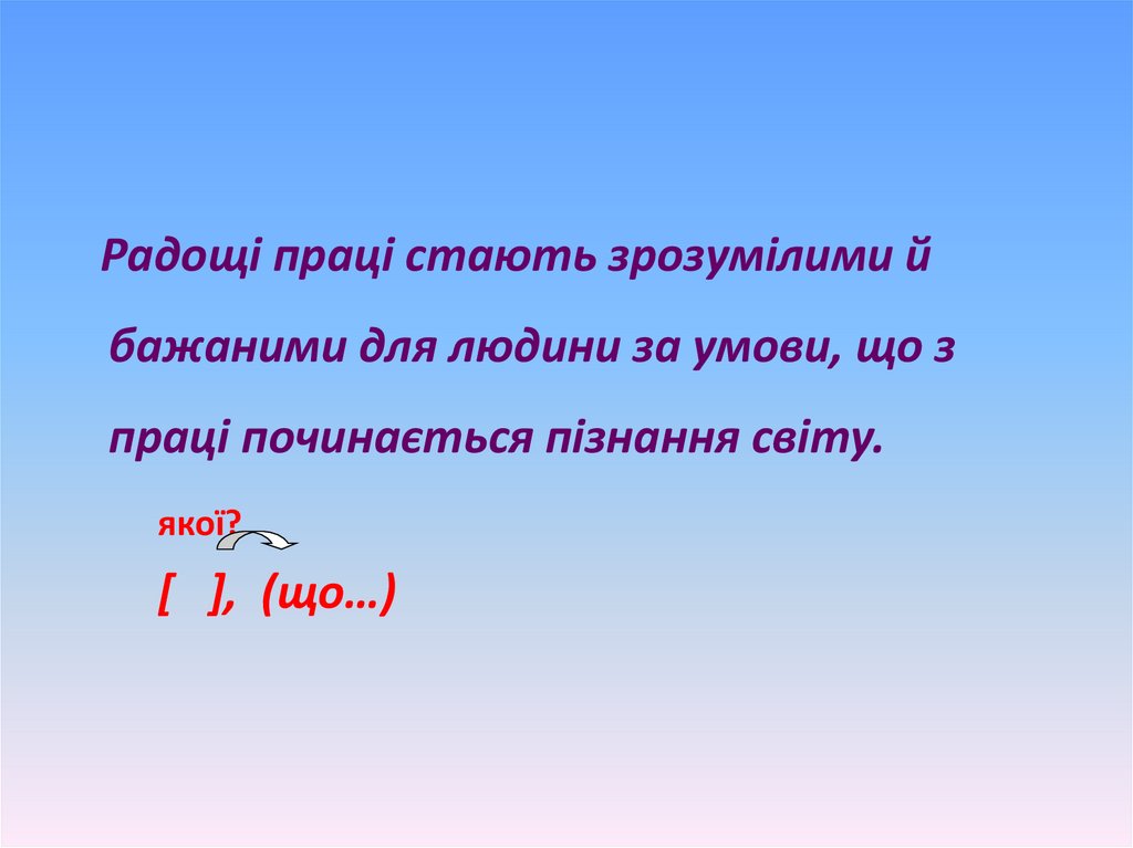 Радощі праці стають зрозумілими йбажаними для людини за умови, що з