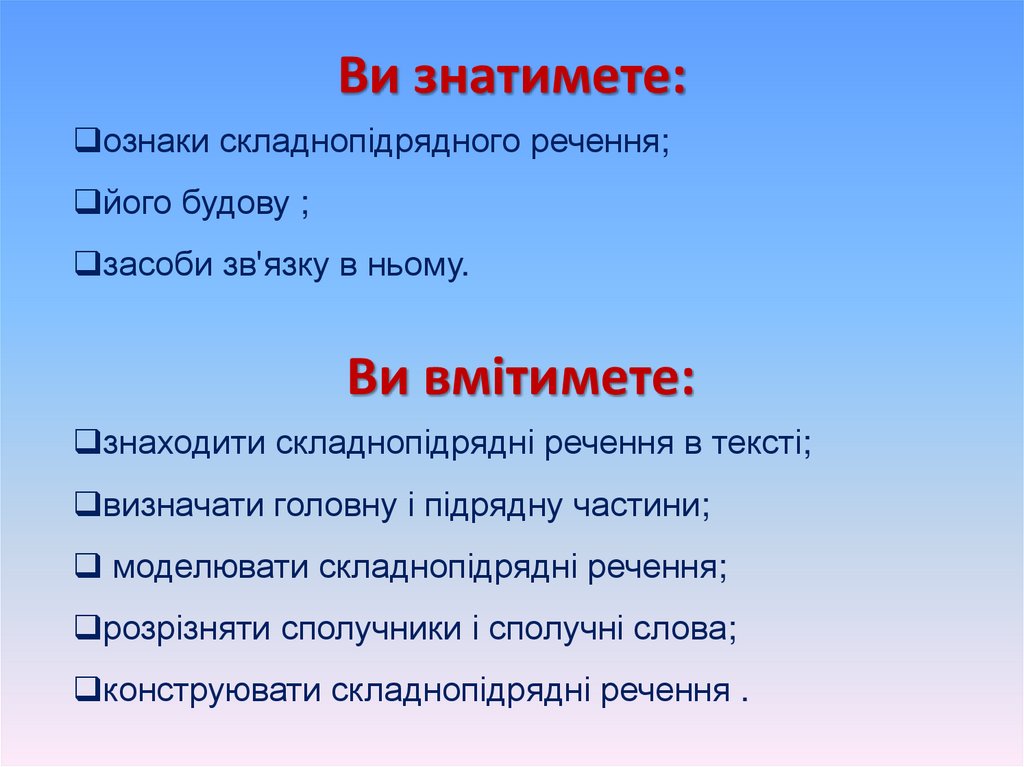 1. Складнопідрядне речення, його будова й засоби зв’язку в ньому.