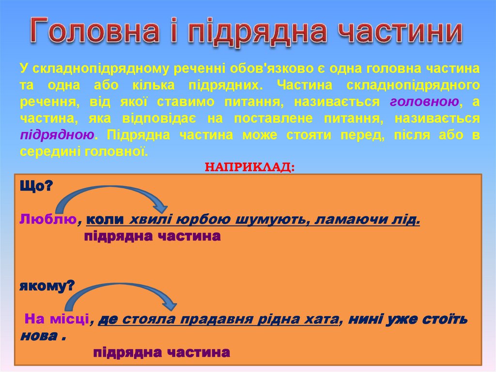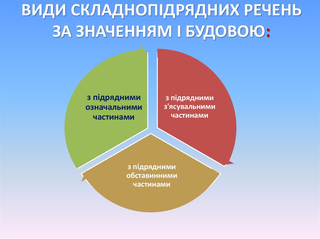 7. ВИДИ СКЛАДНОПІДРЯДНИХ РЕЧЕНЬ ЗА ЗНАЧЕННЯМ І БУДОВОЮ: