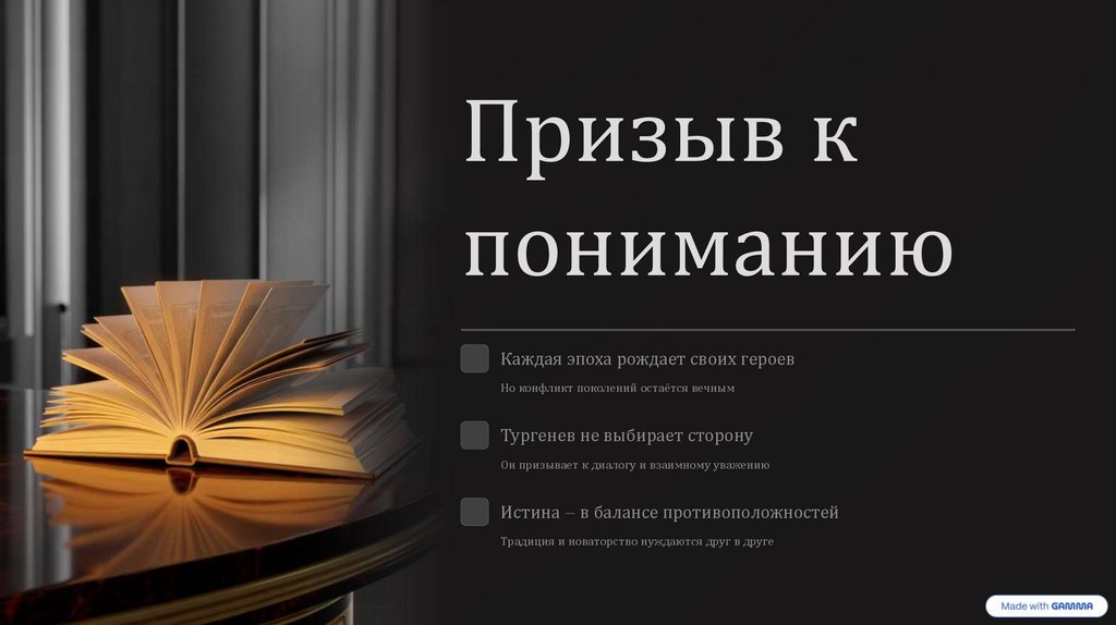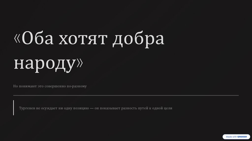 Тургенев не осуждает ни одну позицию — он показывает разность путей к одной цели
