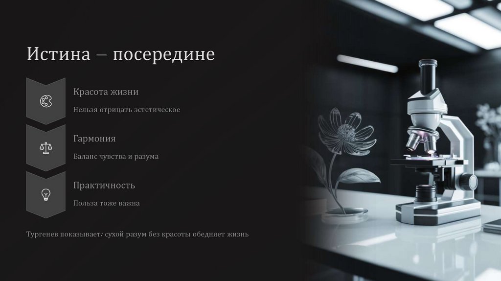 Тургенев показывает: сухой разум без красоты обедняет жизнь