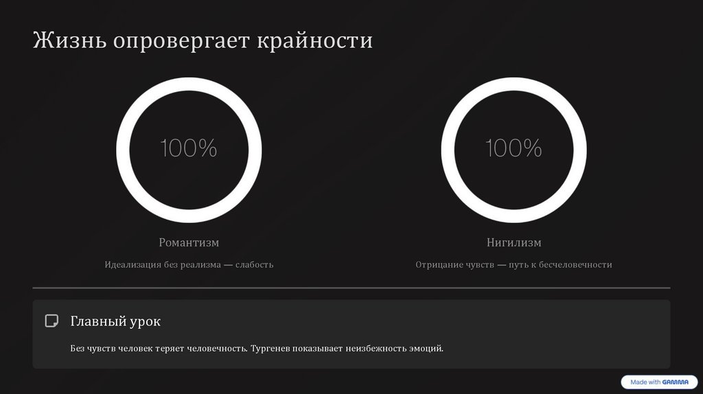 Без чувств человек теряет человечность. Тургенев показывает неизбежность эмоций.