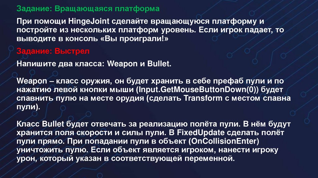 Задание: Вращающаяся платформаПри помощи HingeJoint сделайте вращающуюся платформу и