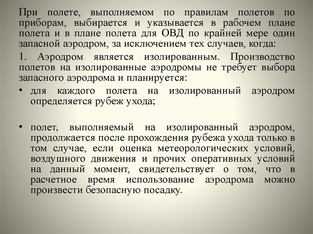 Полеты на изолированные аэродромы планируются всоответствии с положениями, которые предусматривают,