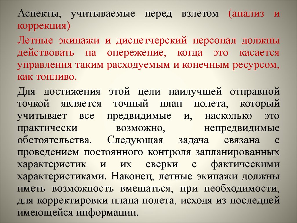 Аспекты, учитываемые перед взлетом (анализ икоррекция)