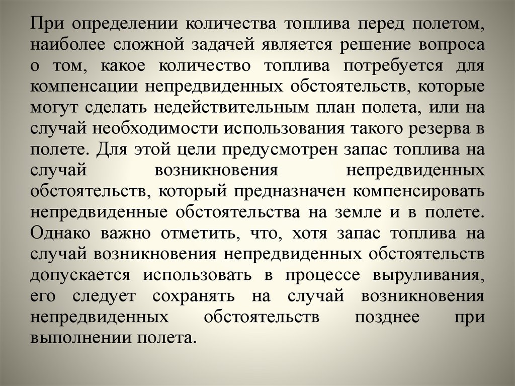 При определении количества топлива перед полетом,наиболее сложной задачей является решение вопроса