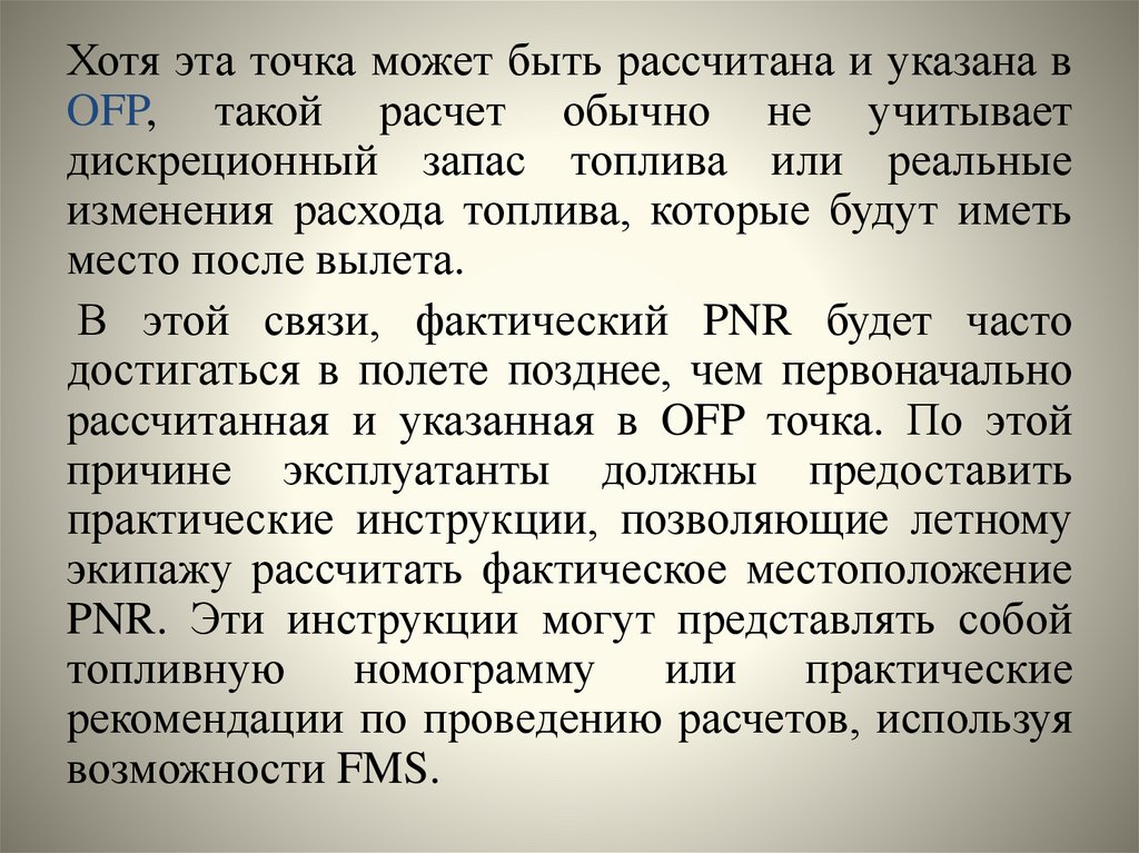 Хотя эта точка может быть рассчитана и указана вOFP, такой расчет обычно не учитывает