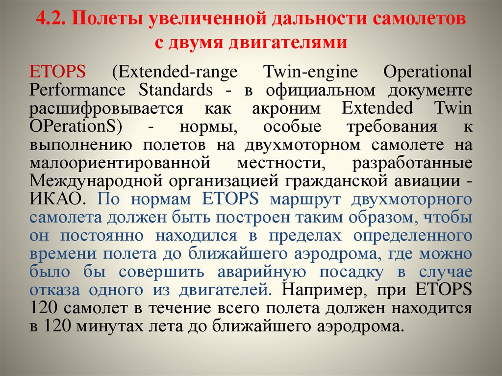 6. 4.2. Полеты увеличенной дальности самолетов с двумя двигателями