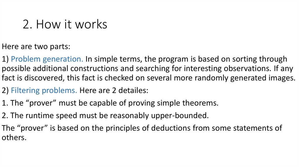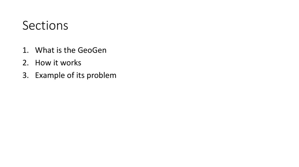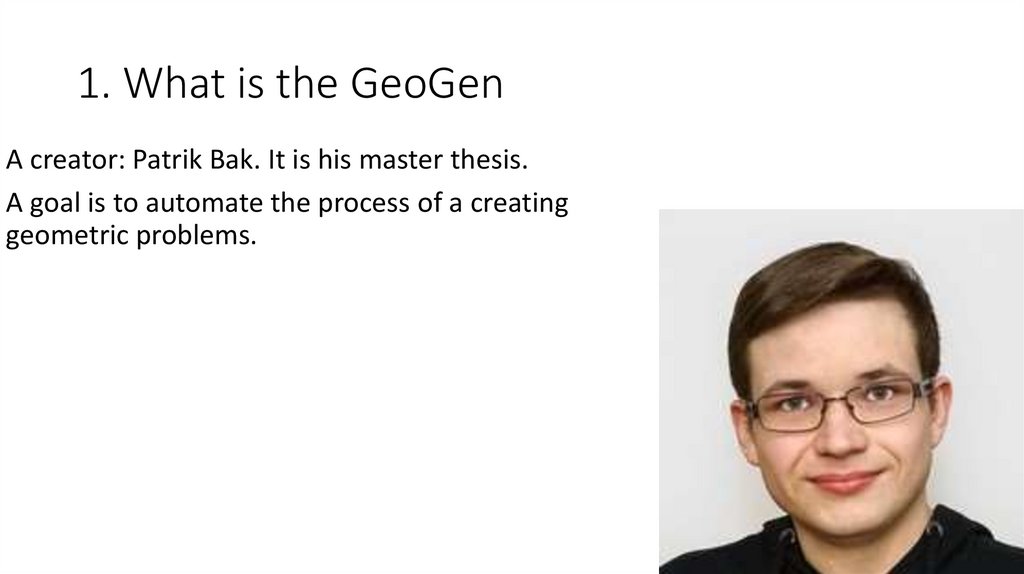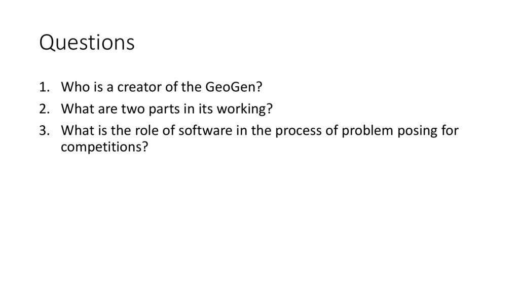 1. Who is a creator of the GeoGen?2. What are two parts in its working?