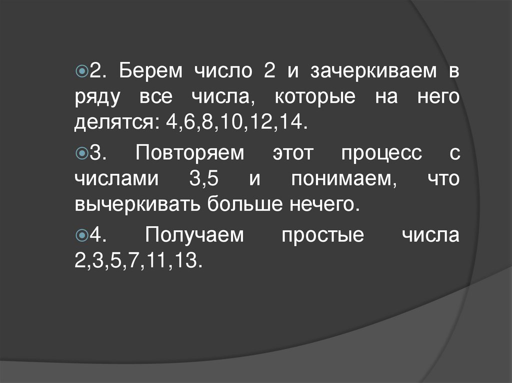 2. Берем число 2 и зачеркиваем вряду все числа, которые на него