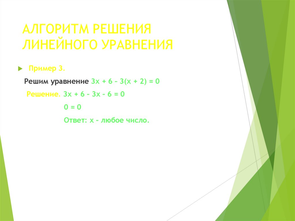 Пример 3.Решим уравнение 3x + 6 – 3(x + 2) = 0