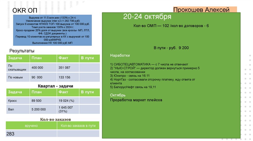 OKR ОПВыручка от 11.5 млн.мес (133% к 24 г)