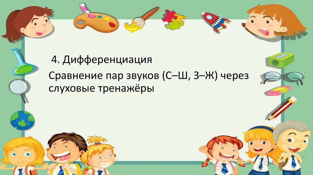 4. ДифференциацияСравнение пар звуков (С–Ш, З–Ж) через