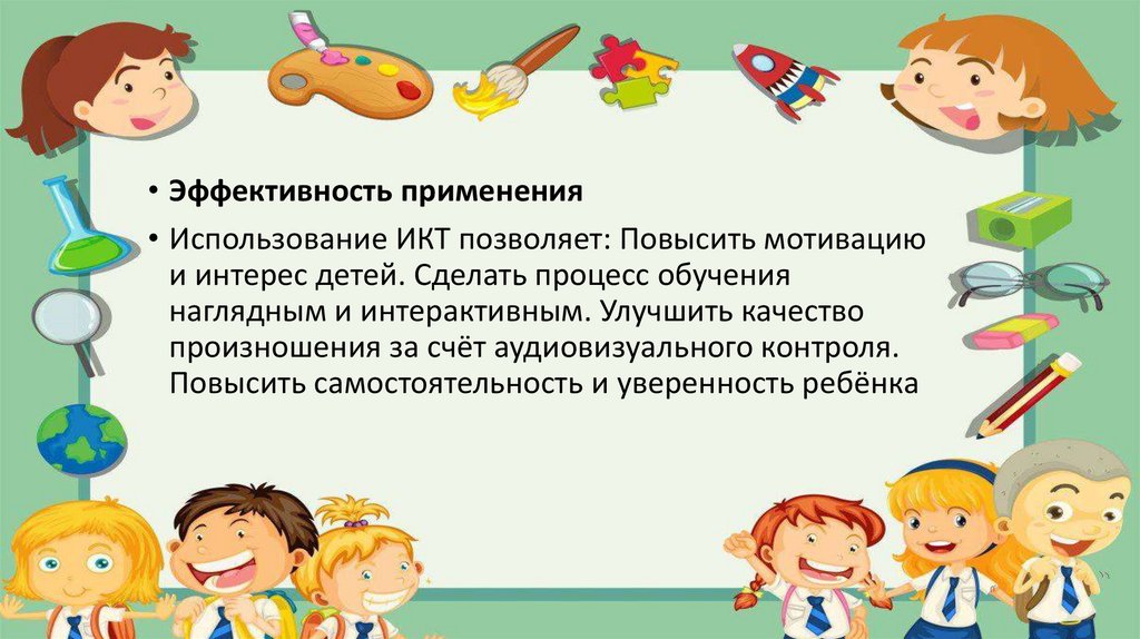 • Эффективность применения• Использование ИКТ позволяет: Повысить мотивацию