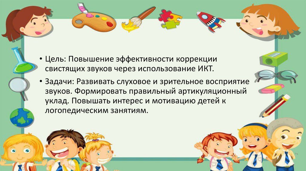 • Цель: Повышение эффективности коррекциисвистящих звуков через использование ИКТ.