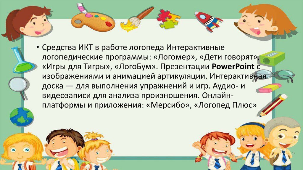 • Средства ИКТ в работе логопеда Интерактивныелогопедические программы: «Логомер», «Дети говорят»,
