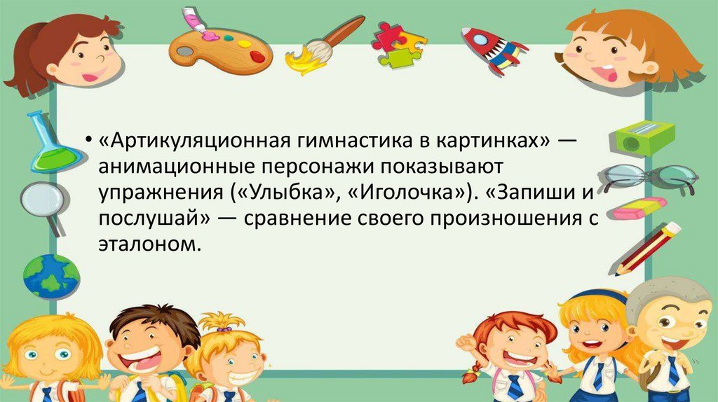 • «Артикуляционная гимнастика в картинках» —анимационные персонажи показывают