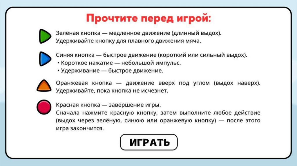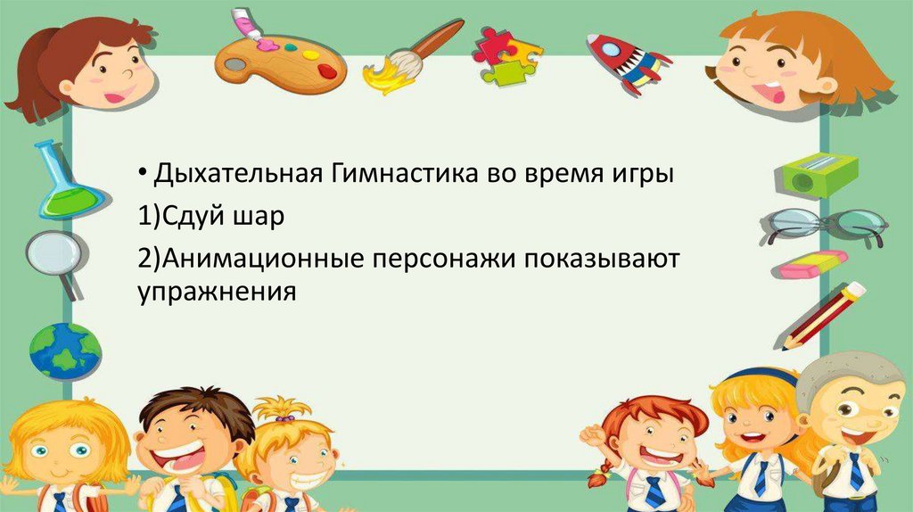 • Дыхательная Гимнастика во время игры1)Сдуй шар