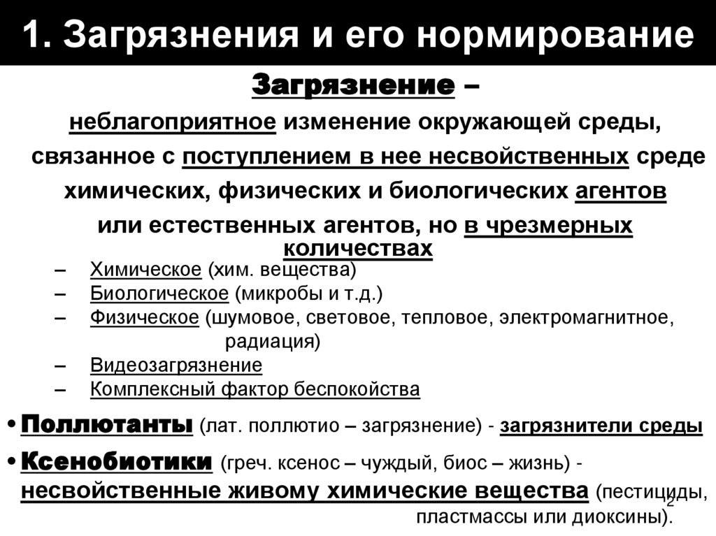 Загрязнение –неблагоприятное изменение окружающей среды,