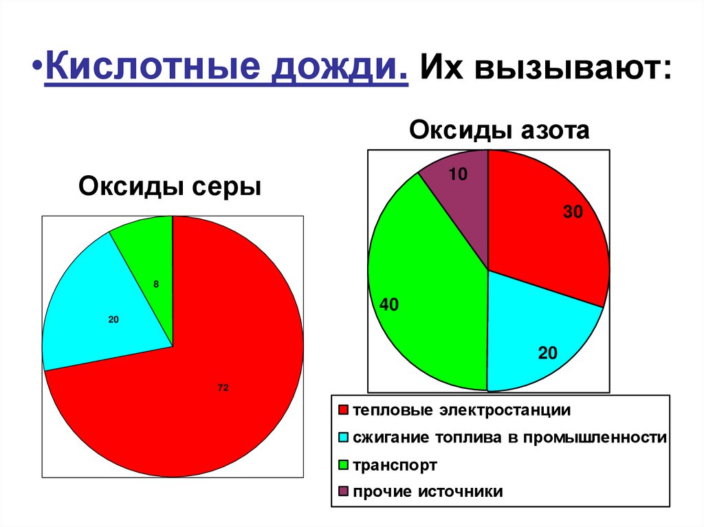 •Кислотные дожди. Их вызывают:Оксиды азота