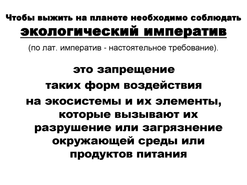 39. Чтобы выжить на планете необходимо соблюдать экологический императив (по лат. императив - настоятельное требование).