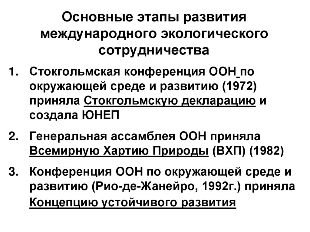 1. Стокгольмская конференция ООН поокружающей среде и развитию (1972)