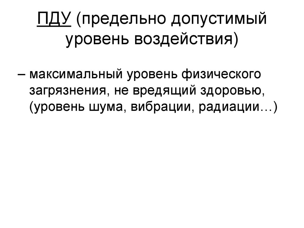 – максимальный уровень физическогозагрязнения, не вредящий здоровью,