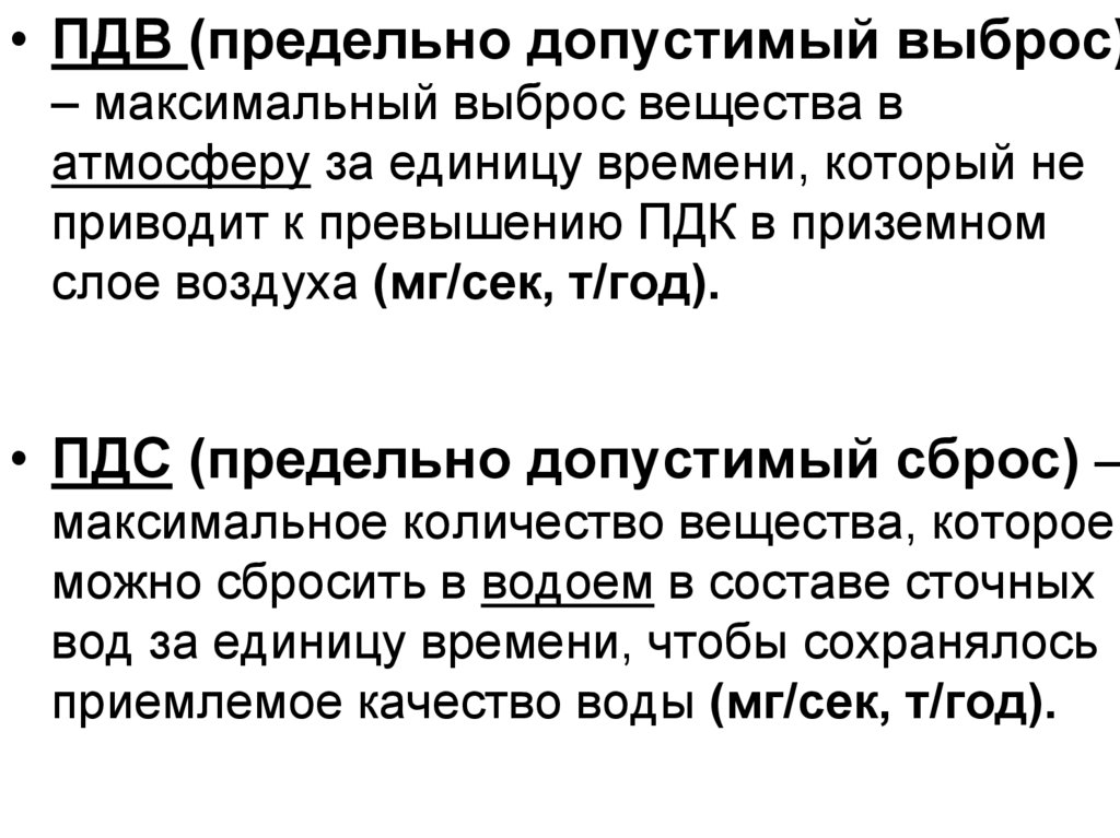 • ПДВ (предельно допустимый выброс)– максимальный выброс вещества в