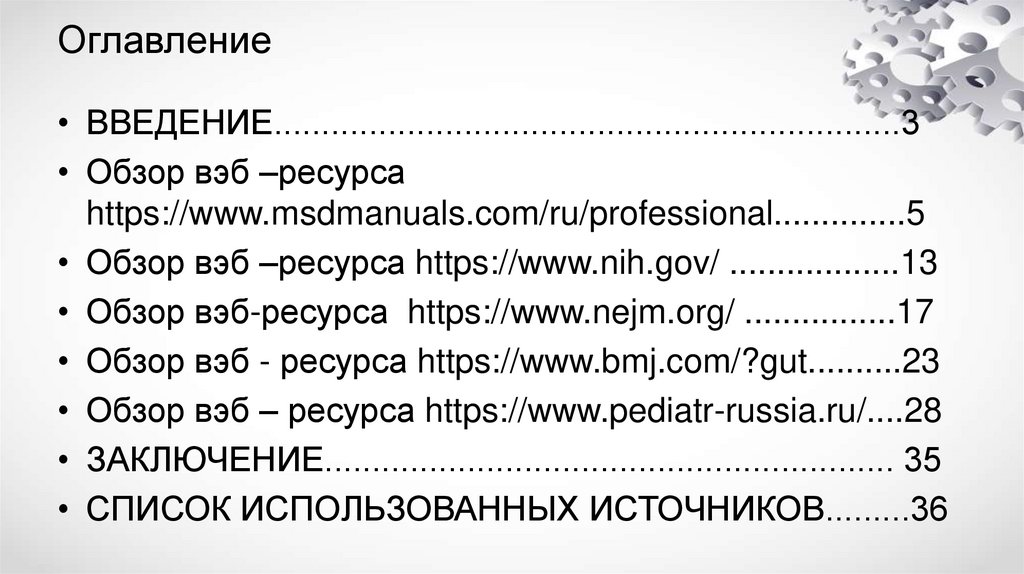 • Обзор вэб –ресурса https://www.nih.gov/ ..................13