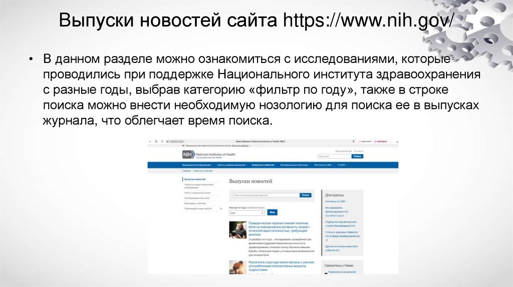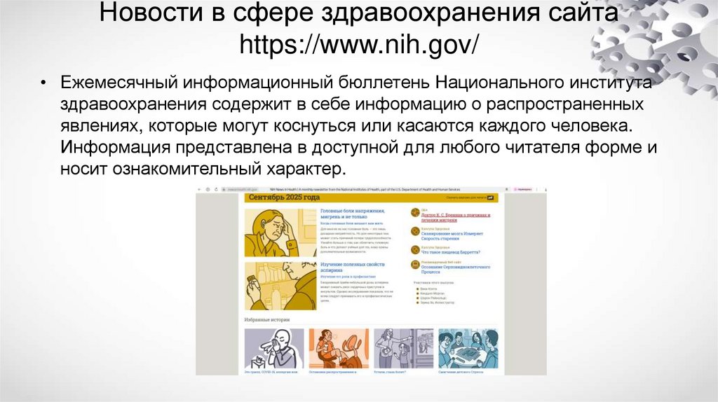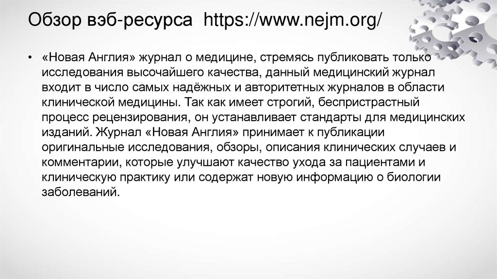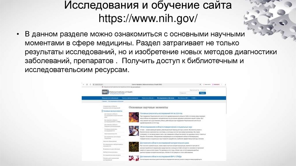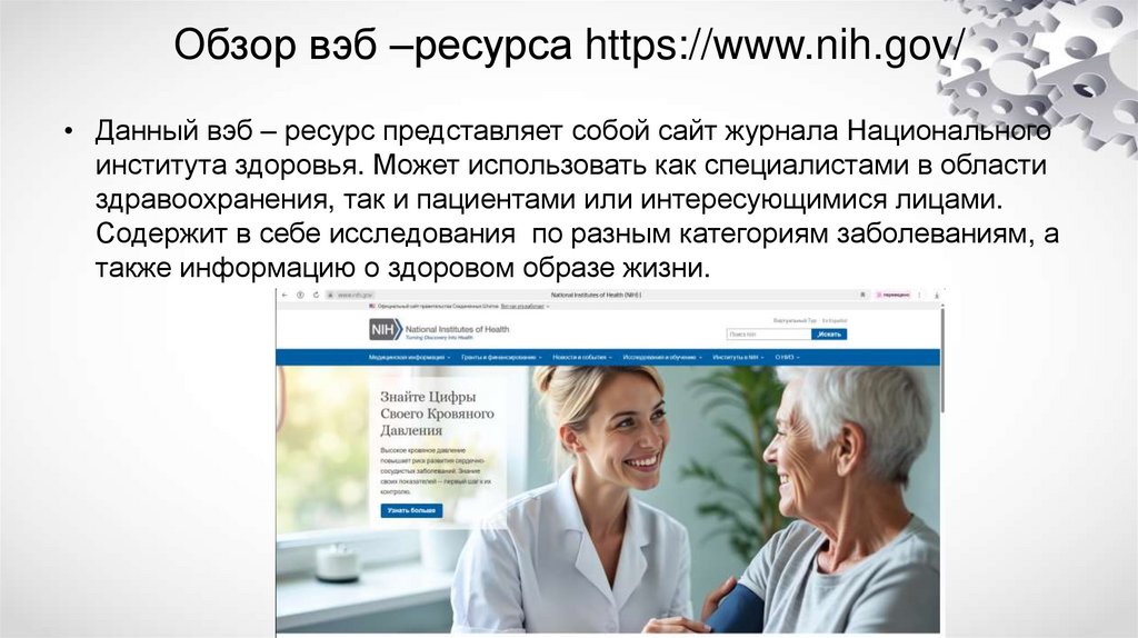 Обзор вэб –ресурса https://www.nih.gov/• Данный вэб – ресурс представляет собой сайт журнала Национального