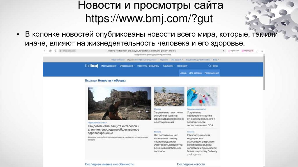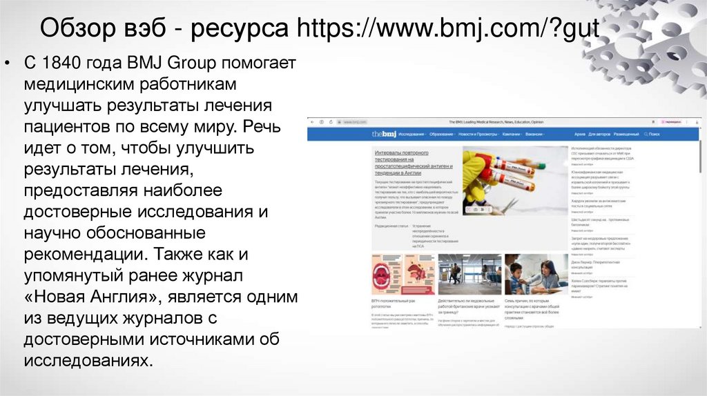 • Обзор вэб - ресурса https://www.bmj.com/?gut..........23