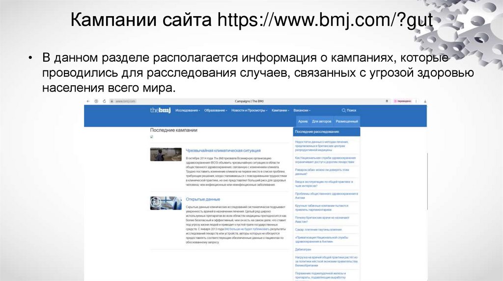 Кампании сайта https://www.bmj.com/?gut• В данном разделе располагается информация о кампаниях, которые