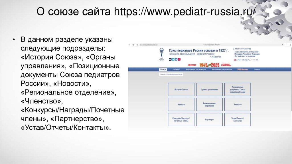 О союзе сайта https://www.pediatr-russia.ru/• В данном разделе указаны