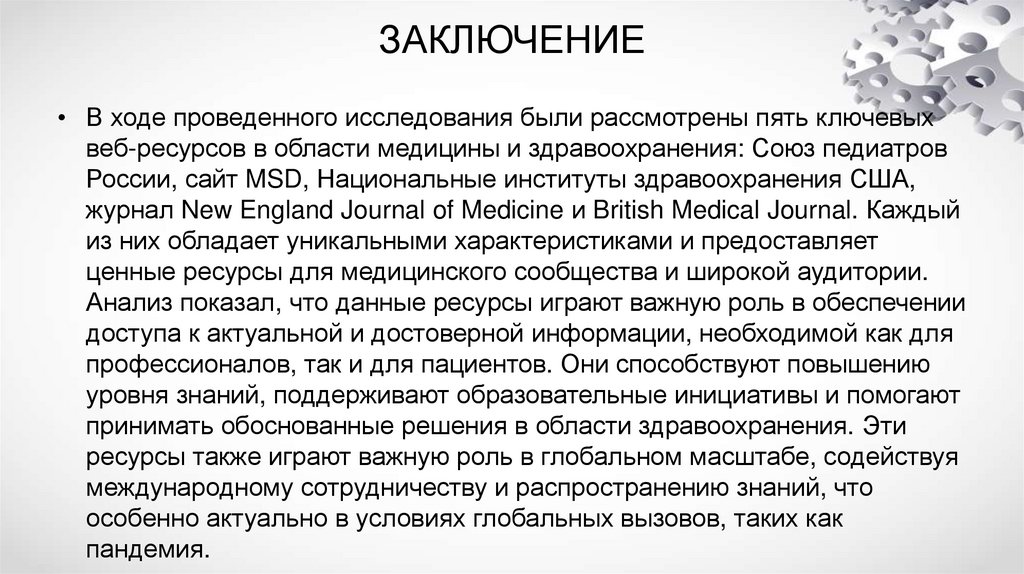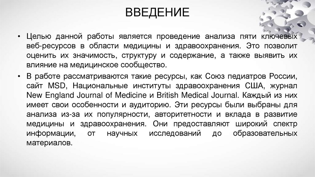 веб-ресурсов в области медицины и здравоохранения. Это позволит