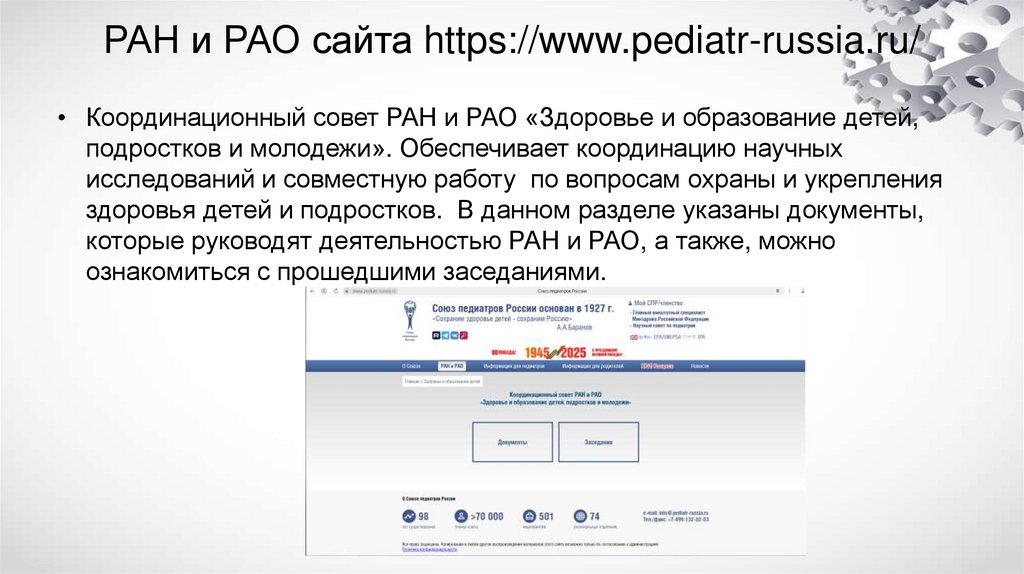 РАН и РАО сайта https://www.pediatr-russia.ru/• Координационный совет РАН и РАО «Здоровье и образование детей,