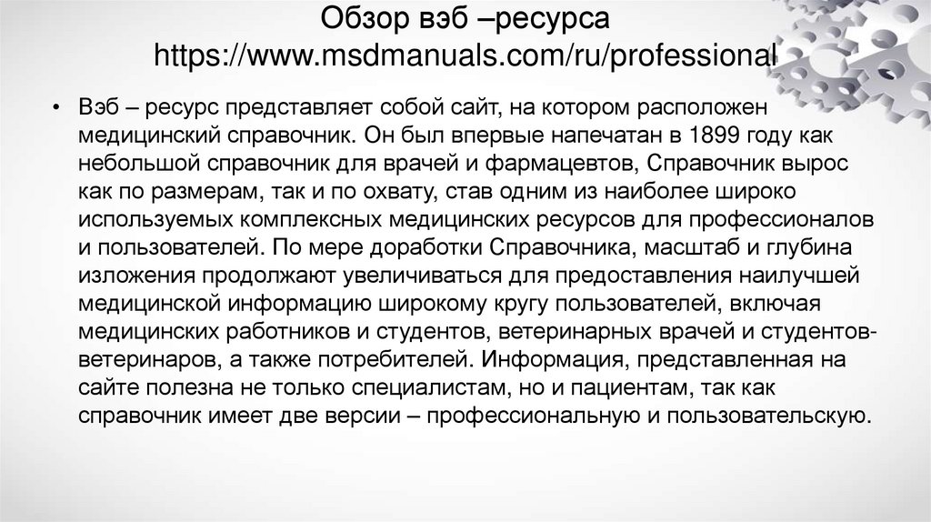 Обзор вэб –ресурсаhttps://www.msdmanuals.com/ru/professional