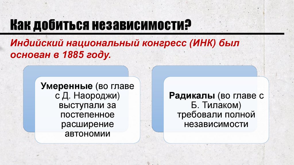 Как добиться независимости?Индийский национальный конгресс (ИНК) был